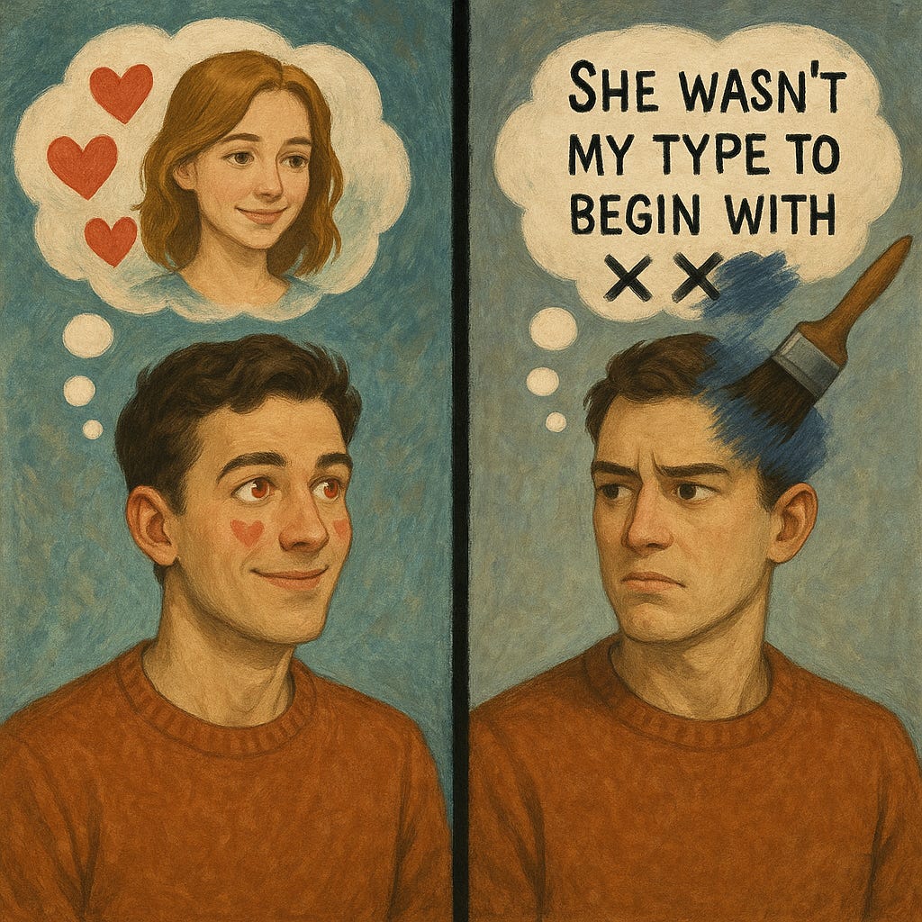 After being rejected, “She wasn’t my type to begin with.”