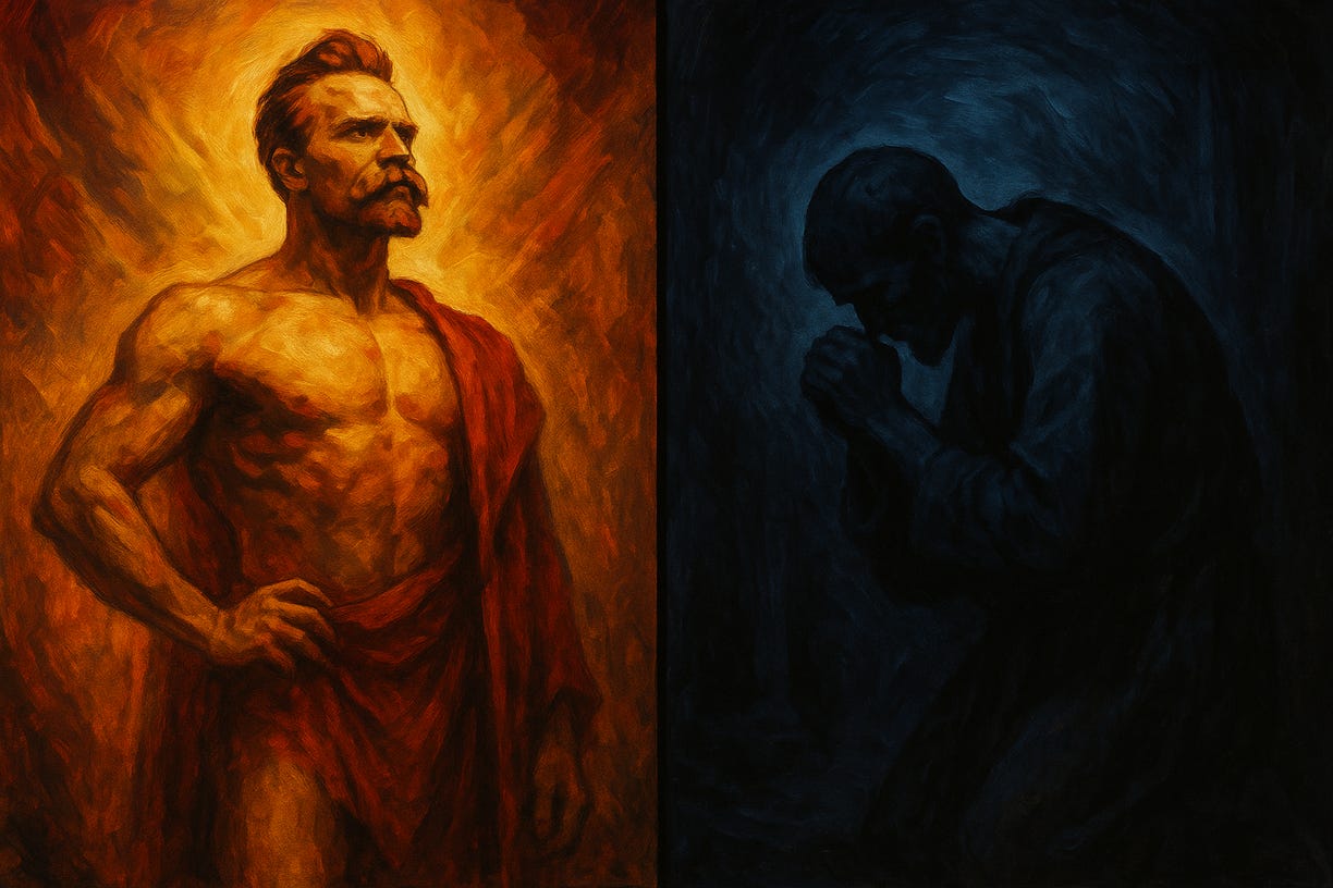 One affirms life through force, the other gains dignity by moral reversal.The ego moves freely between these systems, using whichever serves it best.