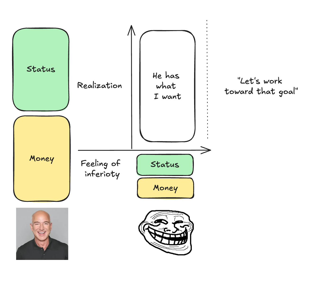 And so the defense mechanism kicks in: attack, disqualify, condemn. Bezos is “greedy”, Kanye is “insane”, "Dubai is “vulgar”. It doesn’t matter whether these claims are true. What matters is that they protect your sense of superiority.